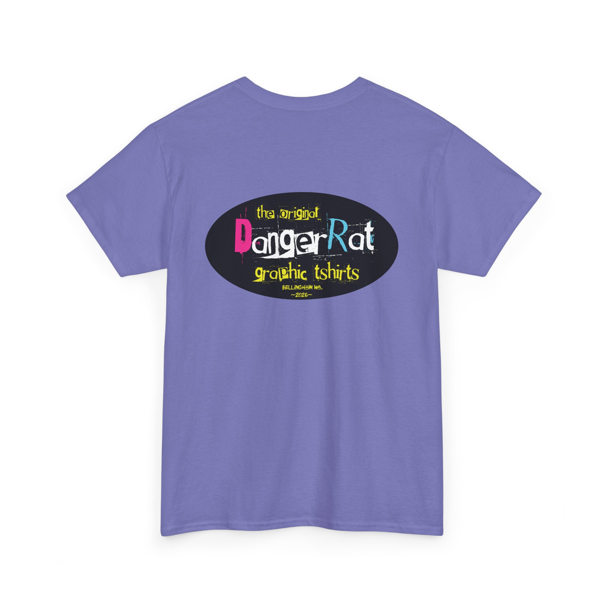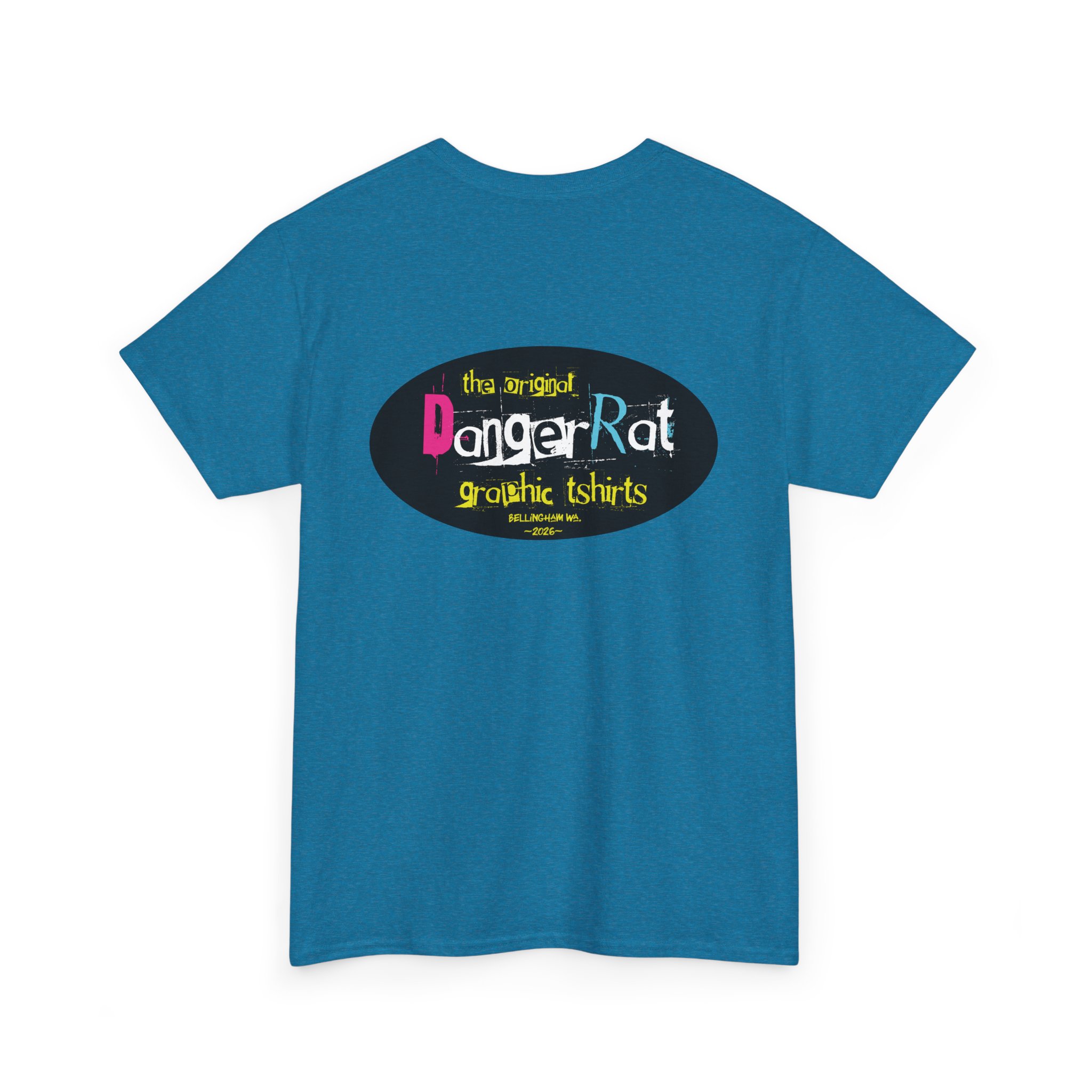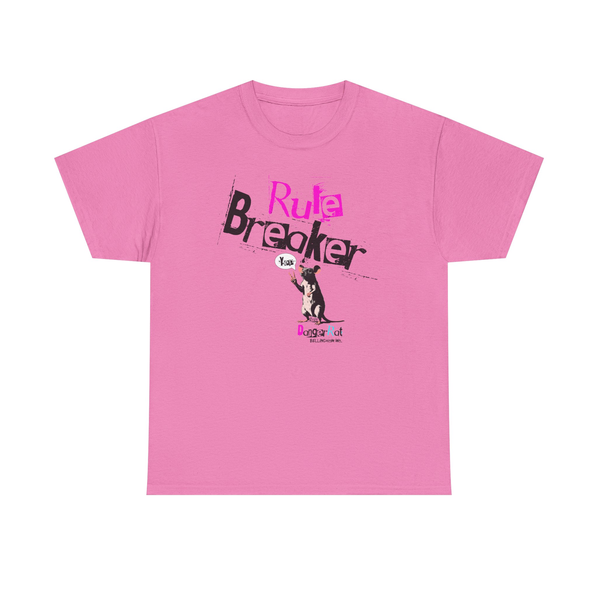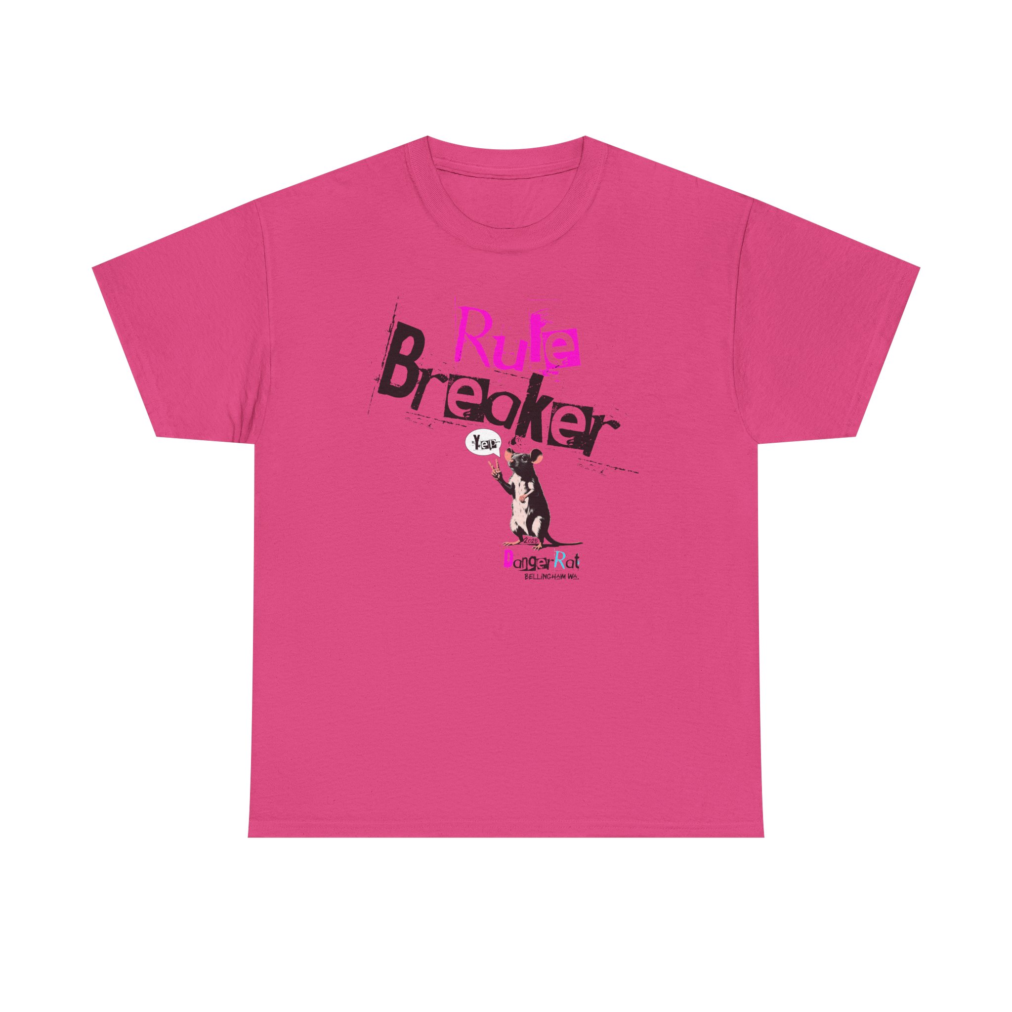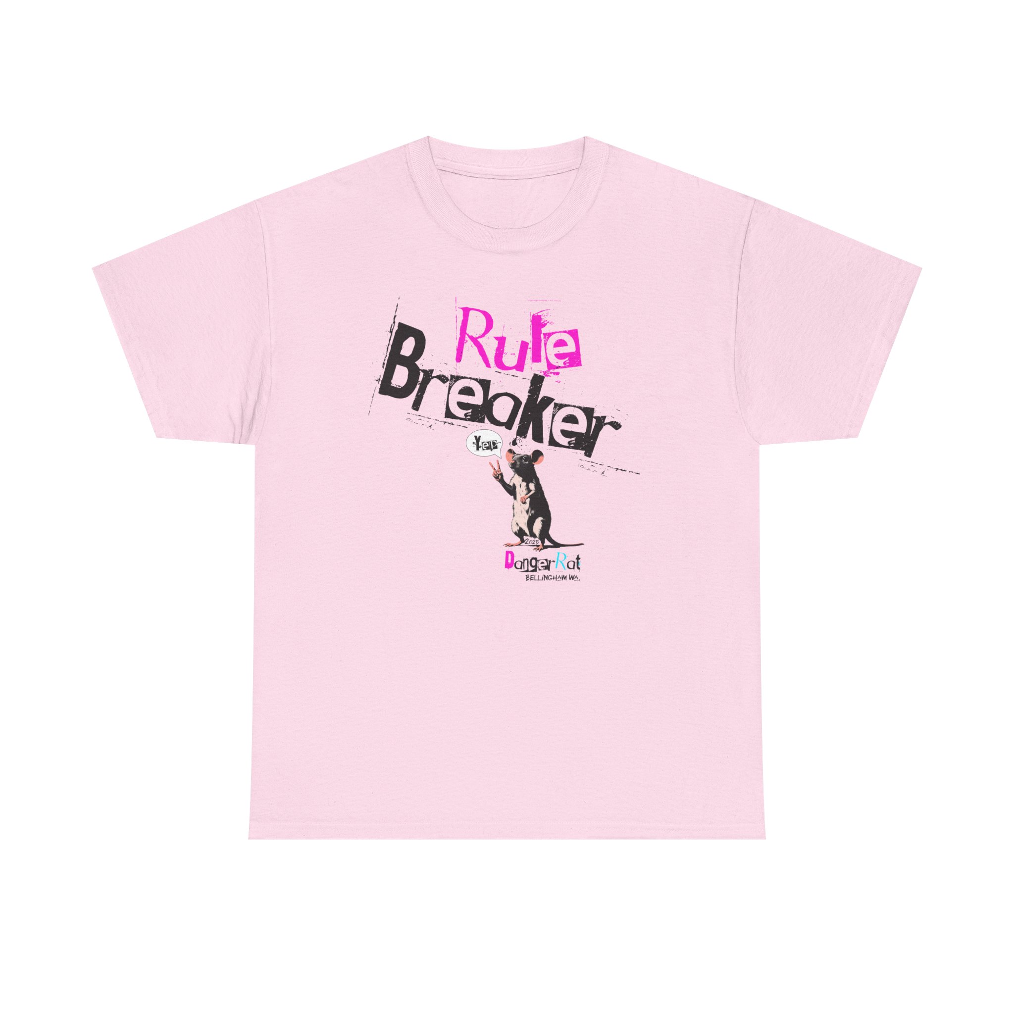 This soft, mid-weight tee carries a playful, rebellious vibe. A distressed, mixed-font front graphic reads “Rule Breaker” above a small illustrated rat—bold, a little cheeky, and unapologetic. The back features a colorful oval logo that nods to underground zines and DIY show flyers. Wear it to show a streak of humor and defiance, whether you’re wandering city alleys, stacking records at a flea market, or meeting friends at a low-key gig. The relaxed crew fit and smooth cotton surface keep the focus on the art while staying comfortable all day.